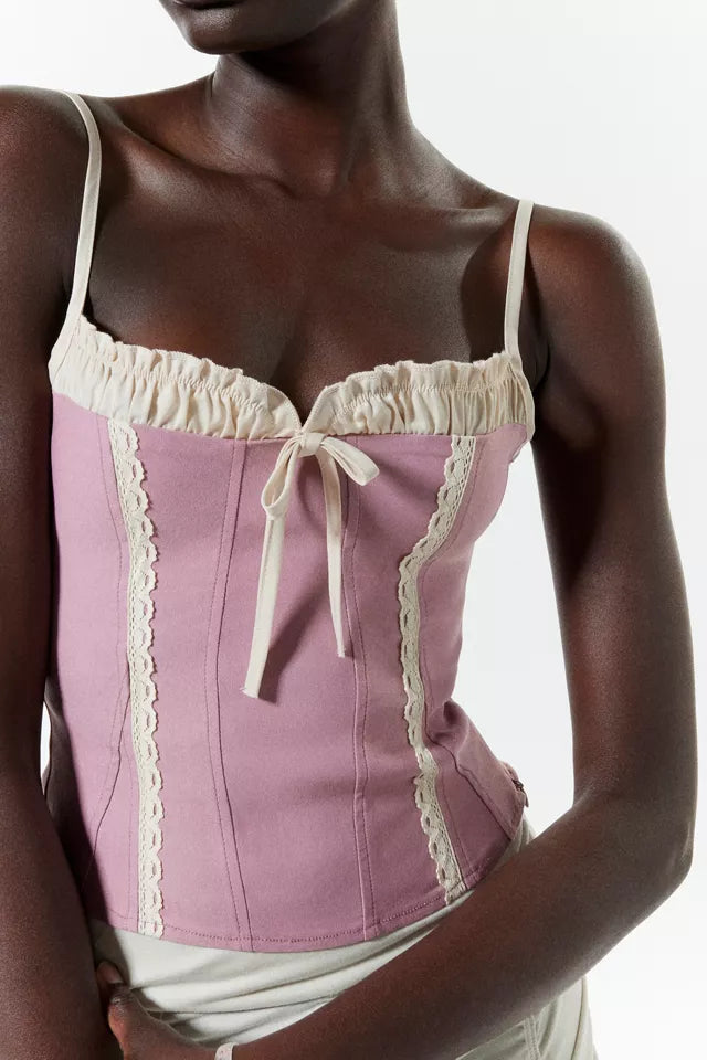 Size imo: 12. Tagged size: L. RRP$. Dusk pink lace up top. Some stretch. Length 45cm. Armpit-armpit 48-52cm. Composition: rayon, nylon, spandex. Faults: none