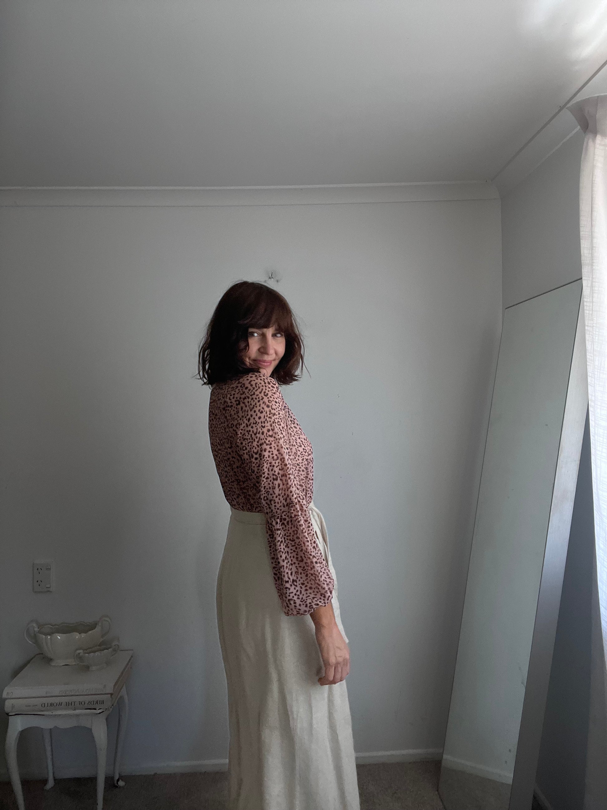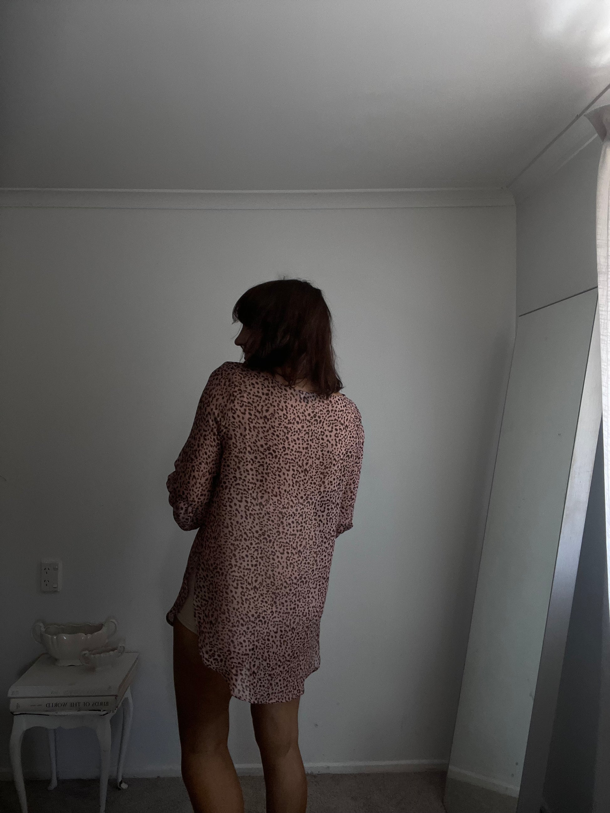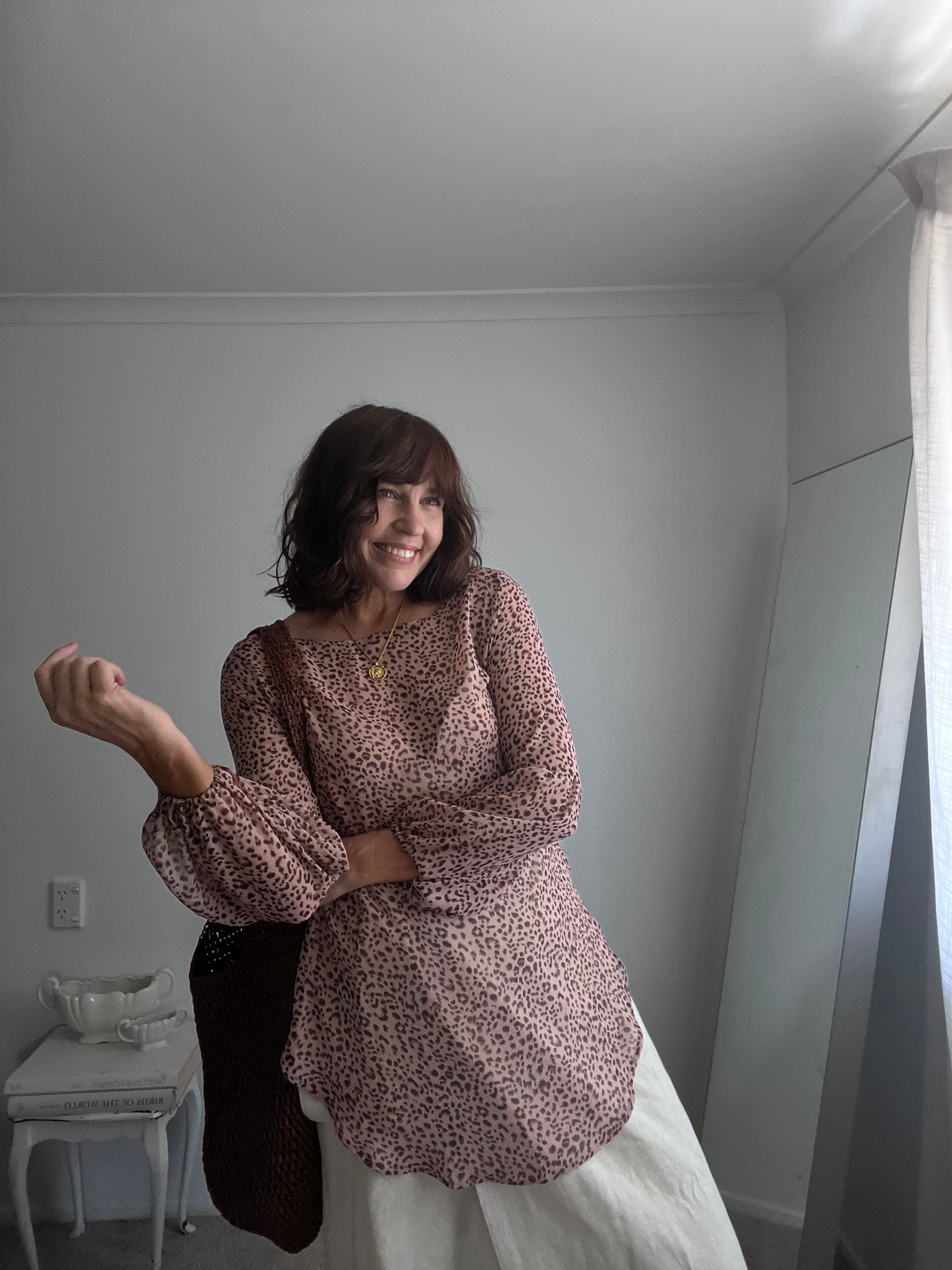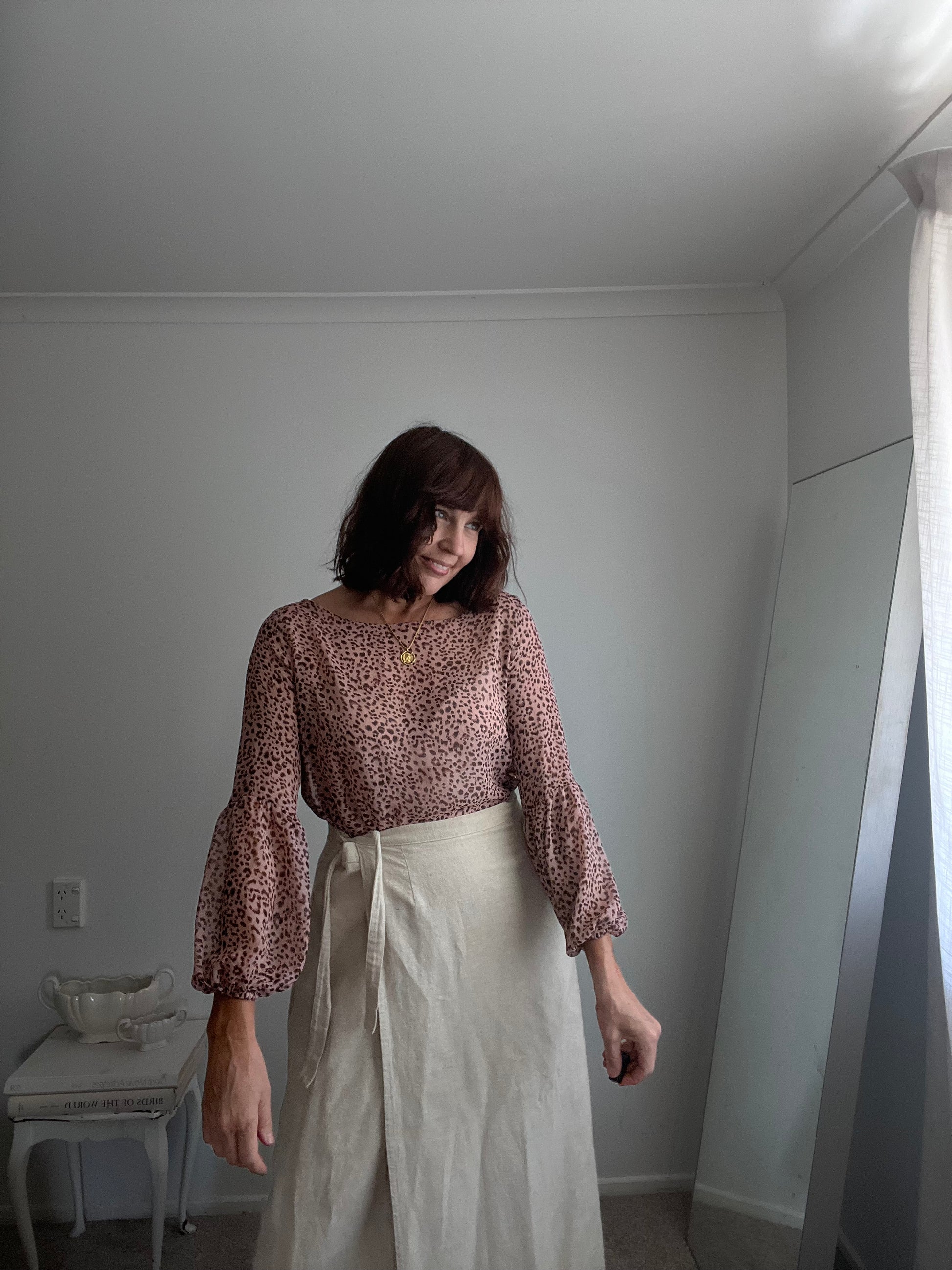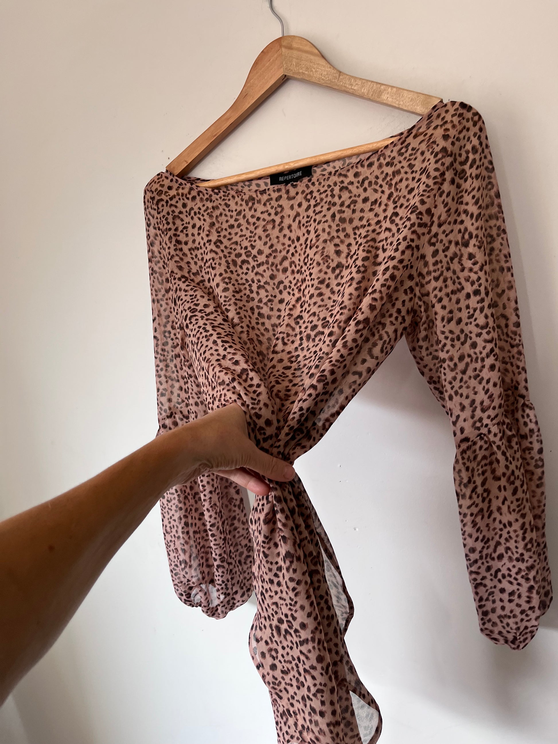 Size imo: 10-12. Tagged size: 10. RRP$299. REPERTOIRE animal print 'Poet' blouse. Length 70/80cm front/back. Armpit-armpit 51cm. Composition: fine polyester. Faults: none