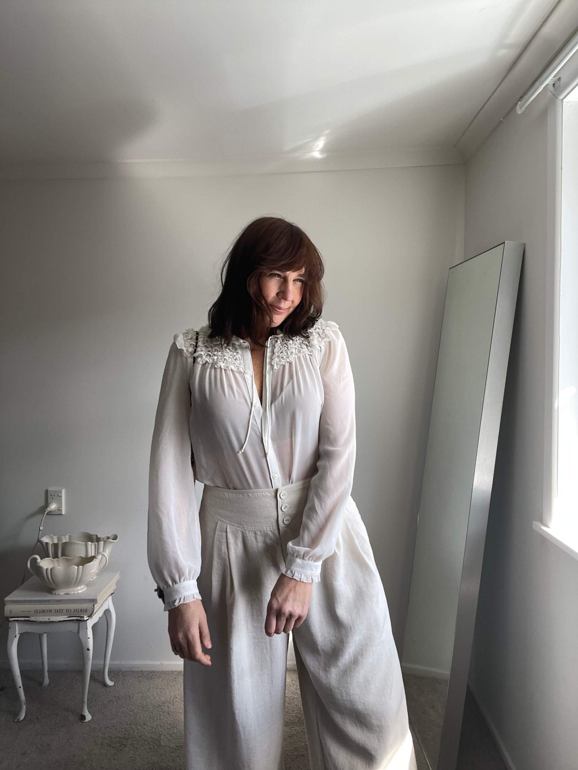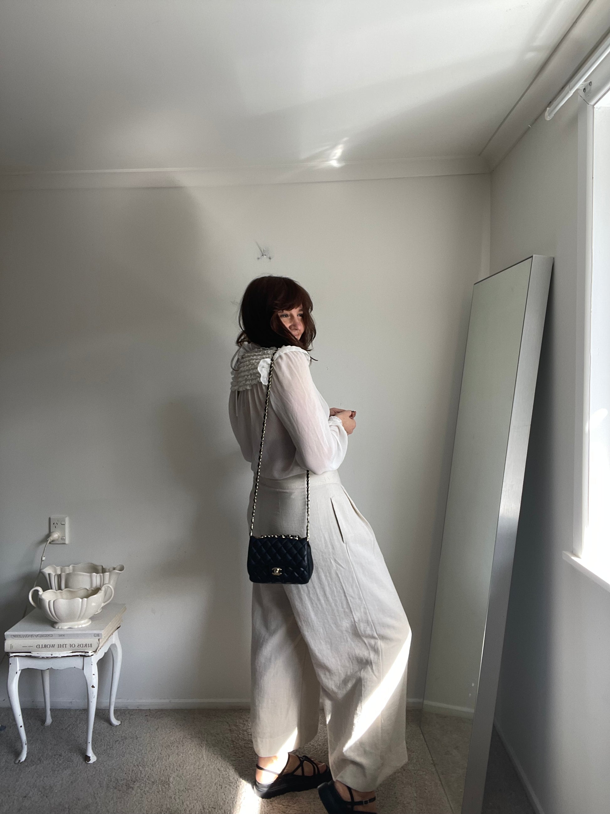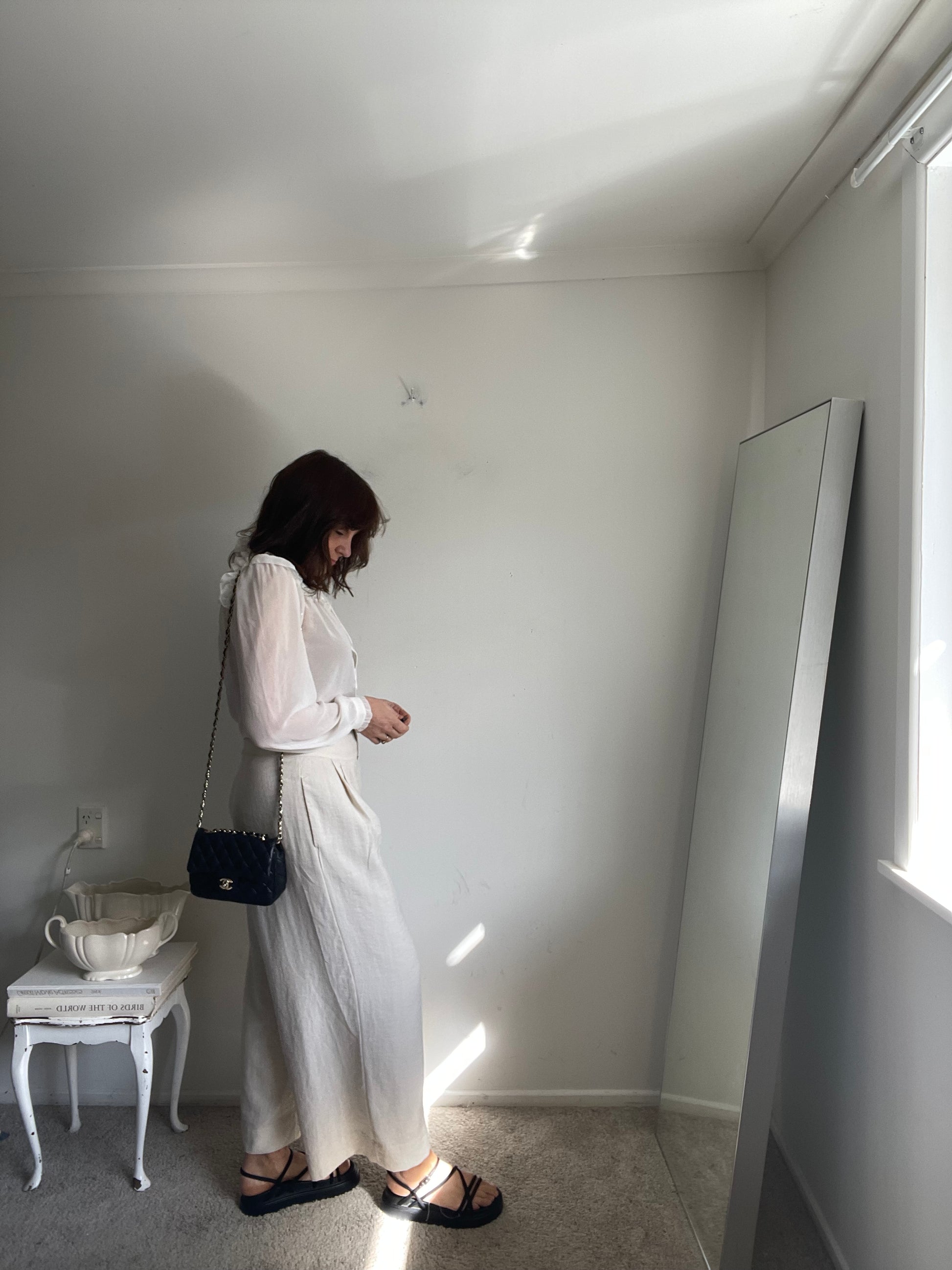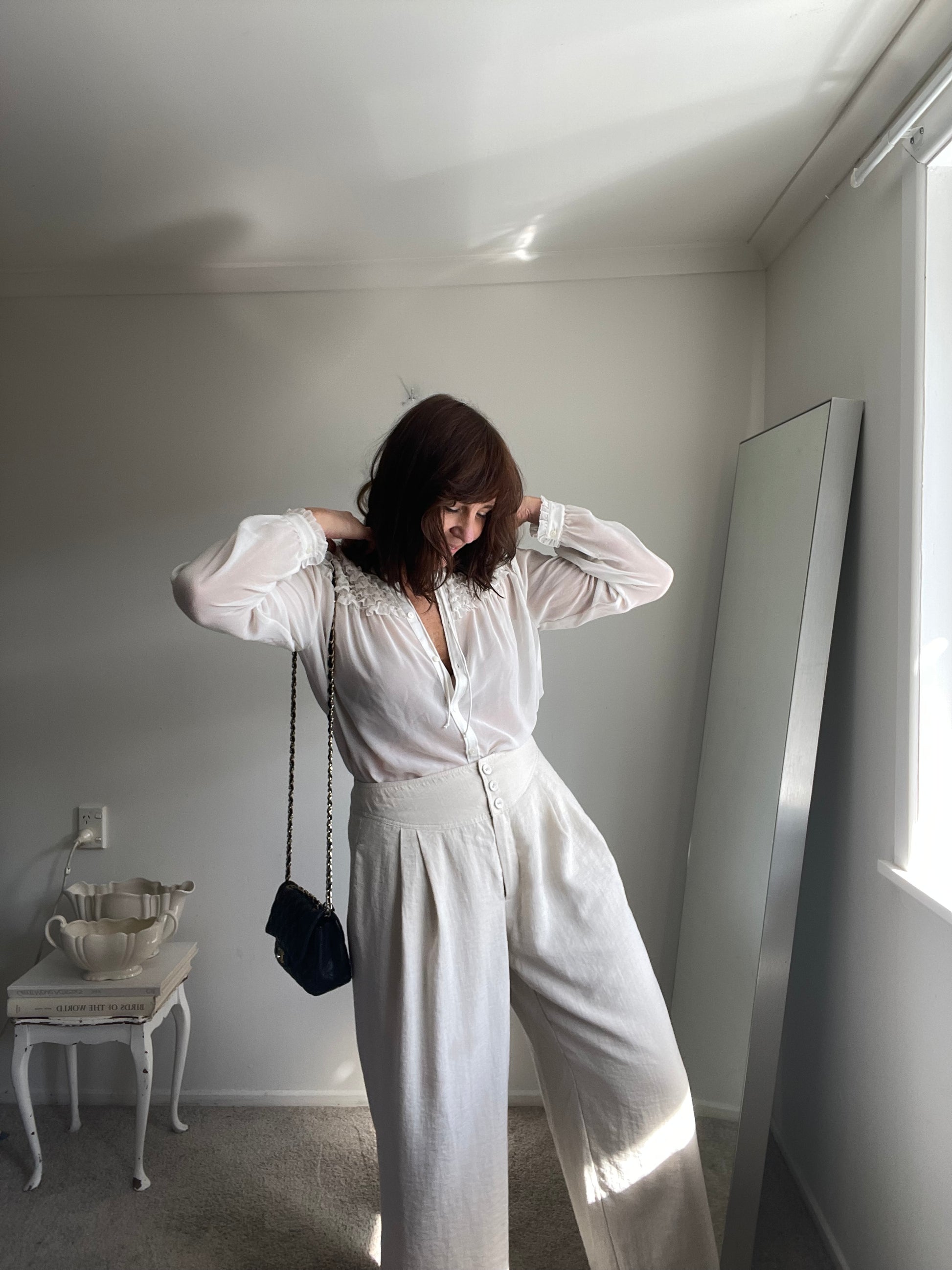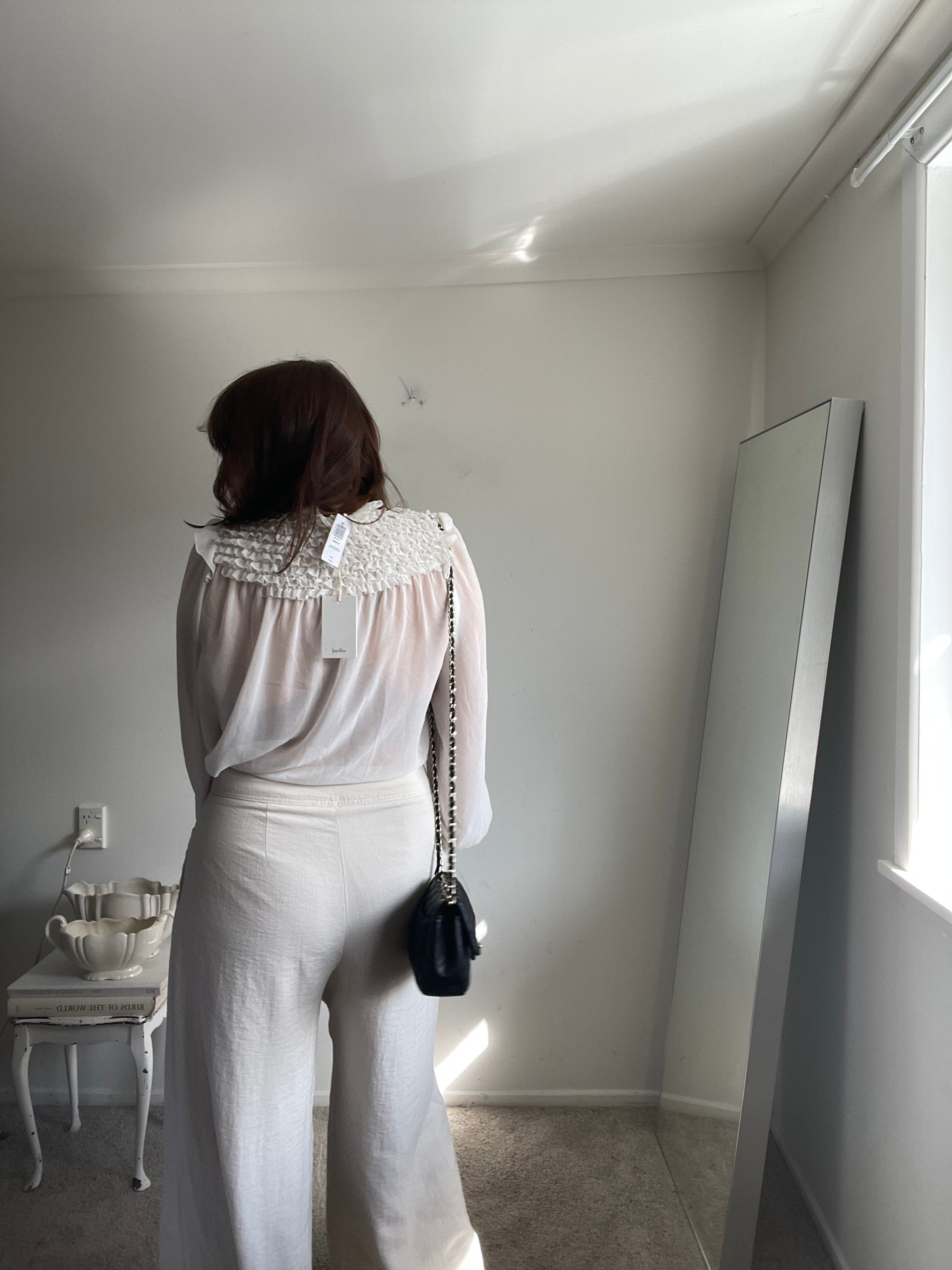 Size 14-16imo. Tagged 16. RRP$130. WHISTLE wide leg pants with high waist. Natural beige colour. Lined. Length 100cm. Rise 35cm. Waist 84cm. Composition: viscose/nylon.